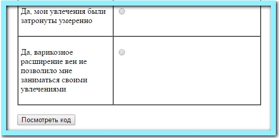 Для расчета по AVVQ введите в таблицу полученные от пациента данные и нажмите кнопку "Посмотреть код" внизу страницы". Часть вопросов относятся к пациенту в целом, часть ориентированы на каждую конечность отдельно. При переходе на другие страницы или вкладки перед таблицей ввода данных появится предупреждение о том, что данные уже были внесены. Для тех, кому нужна дополнительная информацияОписание валидизации опросника Расчет по опроснику ведется с помощью системы коэффициентов, приведенной в таблице алгоритма расчета баллов AVVQ. В Регистре результирующей записью является общая сумма пересчитанных с коэффициентами баллов. AVVQ на русском (опросник не проходил процедуру валидизации, файл с переводом представлен для ознакомления) |