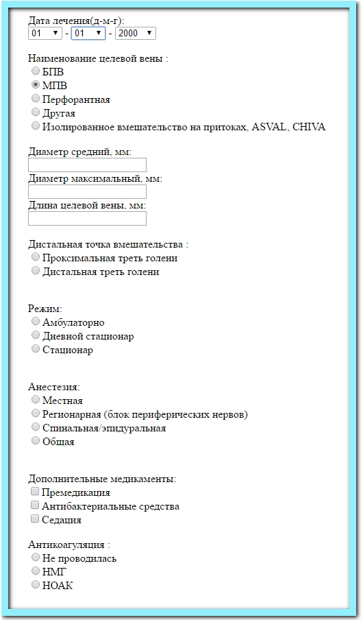 Дата лечения(д-м-г), Наименование целевой вены,